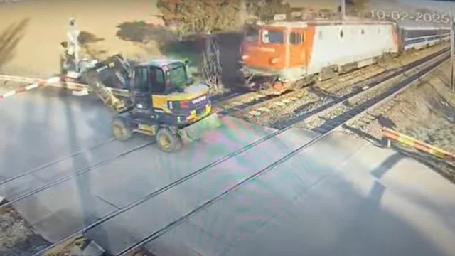 Un excavator a fost lovit de tren, luni dimineață, 10 februarie, pe raza Sucursalei Regionale CF București, în Scroviștea: autoritățile au constatat, în urma verificărilor, că șoferul excavatorului nu avea permis de conducere.